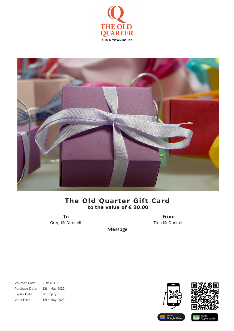 The Old Quarter allows you to purchase instantly printable gift vouchers, special offers and tickets using the Voucher Connect platform.